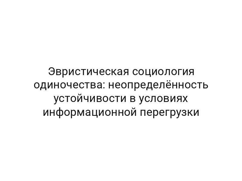 Эвристическая социология одиночества: неопределённость устойчивости в условиях информационной перегрузки